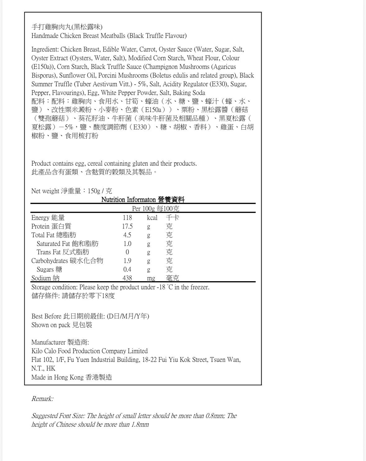 Handmade Chicken Breast Meatballs (Black Truffle) 150g 手打雞胸肉丸黑松露味150g