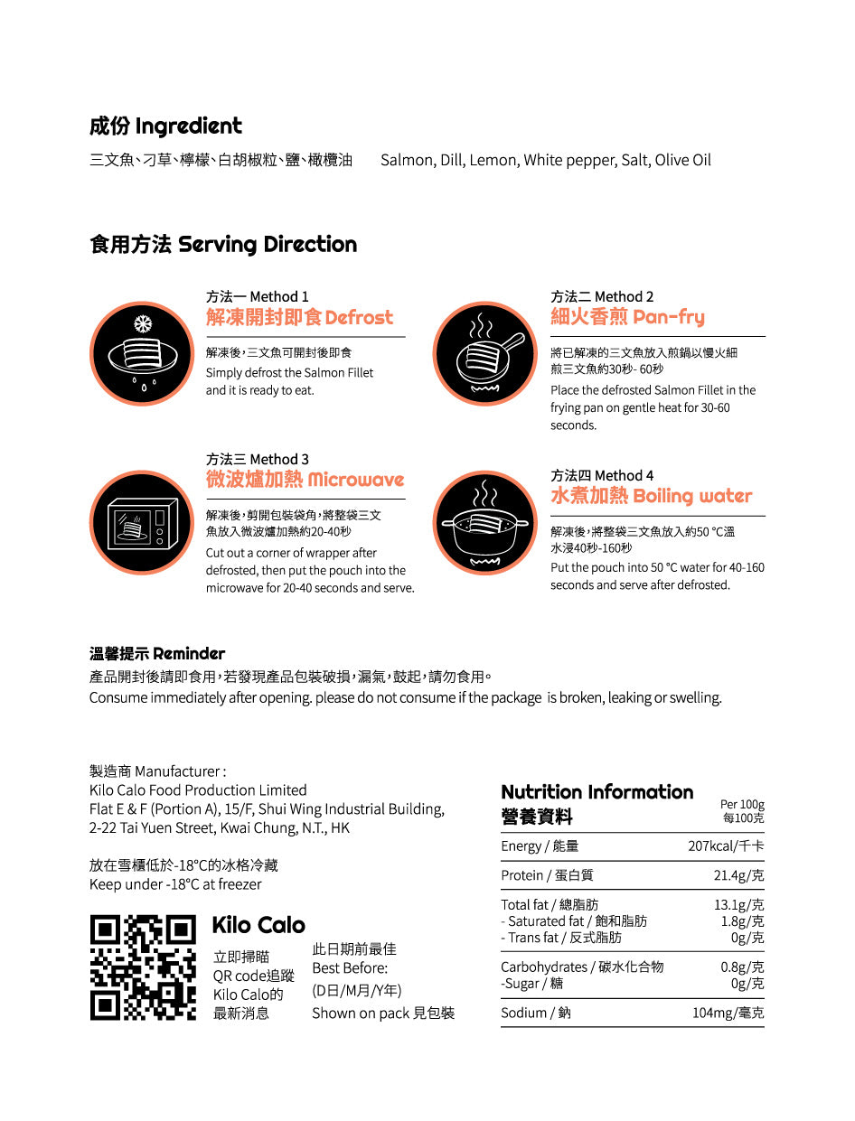 Lemon & Dill Slow-Cooked Salmon Fillet (±120g)檸檬刁草味即食三文魚(±120克)